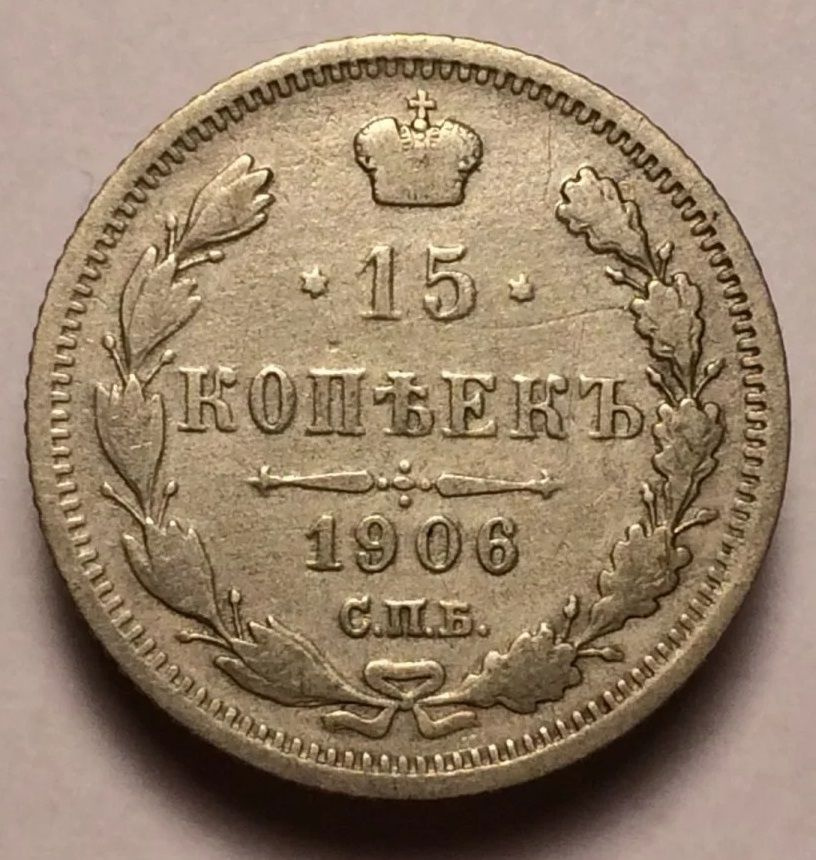Монета Российская Империя 15 копеек 1906 года. Император Николай II ...